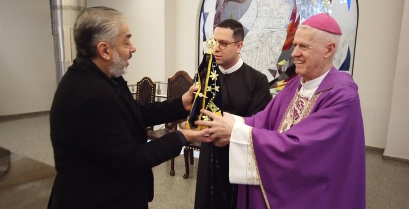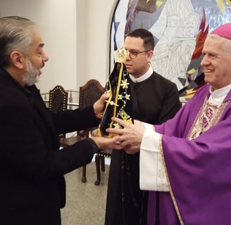 O Instituto Luso - Ítalo - Brasileiro que está organizando as Festividades dos 50 Anos da Imigração Italiana recebeu no dia 21 de fevereiro de 2024, Dia do Imigrante Italiano e da data comemorativa dos 150 anos dos italianos em massa no Brasil, a imagem da Padroeira do Brasil, Nossa Senhora Aparecida.